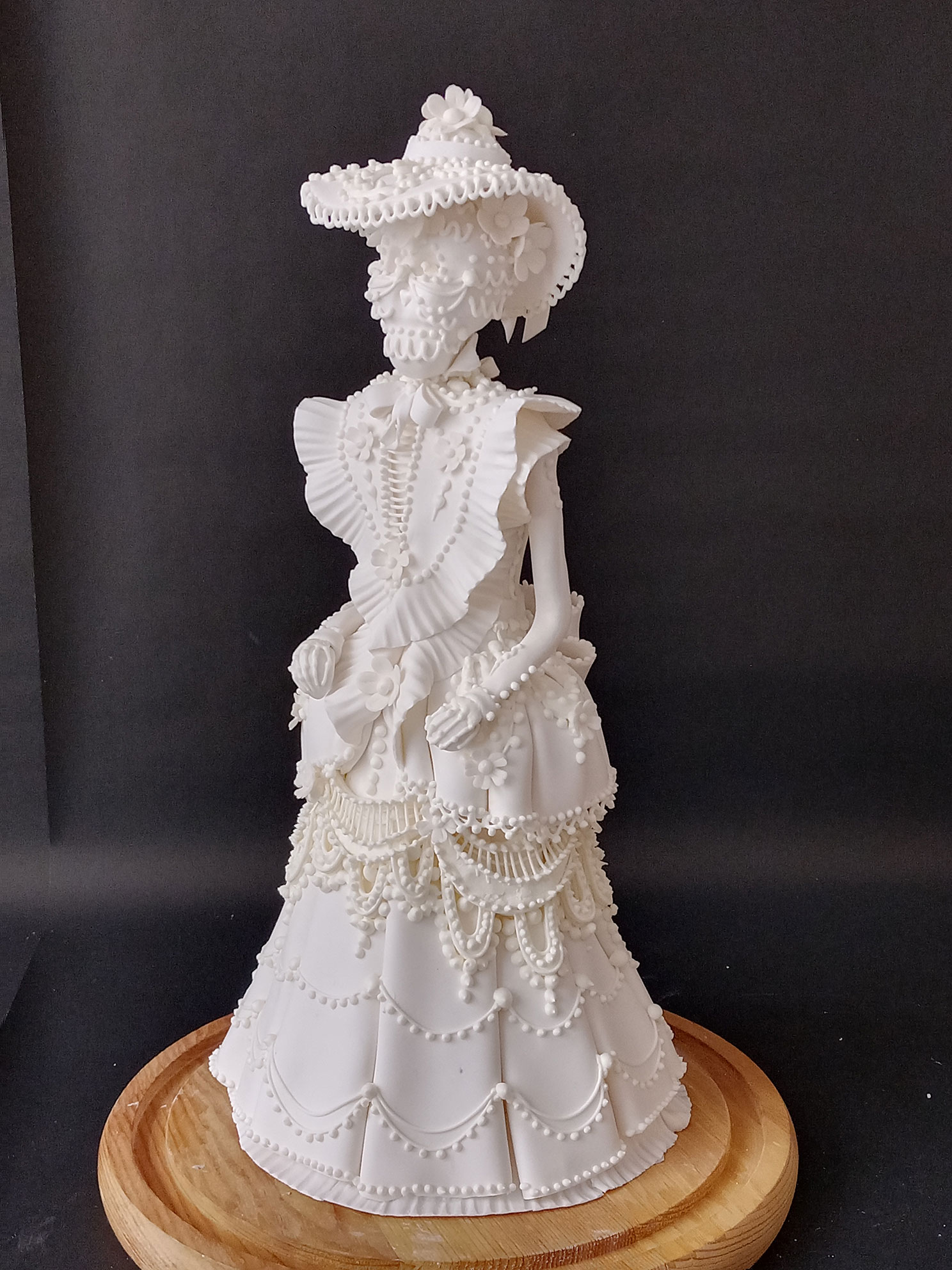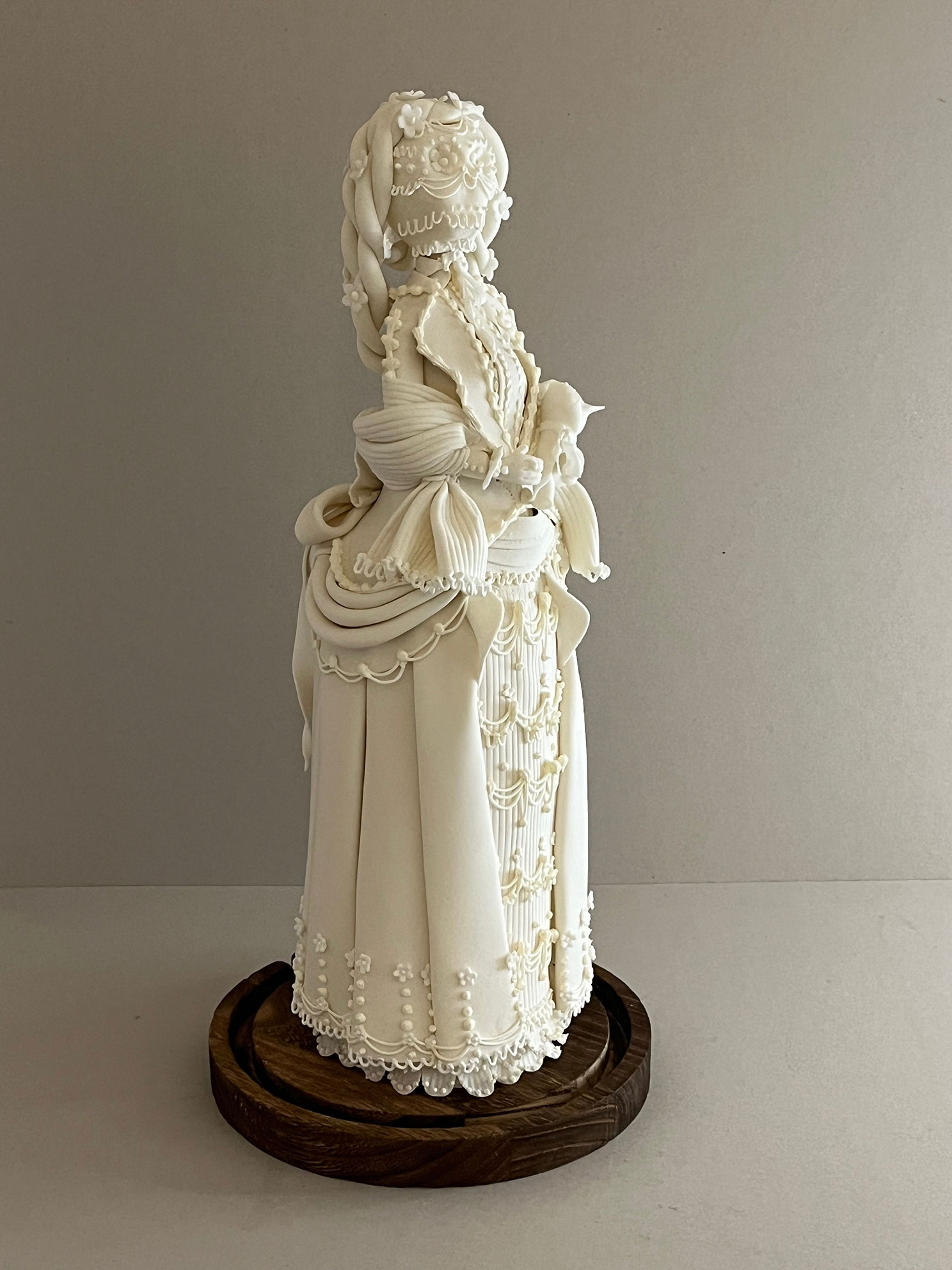 The sugar Catrinas in this collection draw from one of the most recognizable icons of Mexican popular culture: a figure that, through irony and elegance, reminds us that death transcends class, time, and social boundaries. Crafted entirely from sugar, these pieces employ traditional techniques such as alfeñique, sugar filigree, and pastillage, reinterpreted through a contemporary artistic vision.