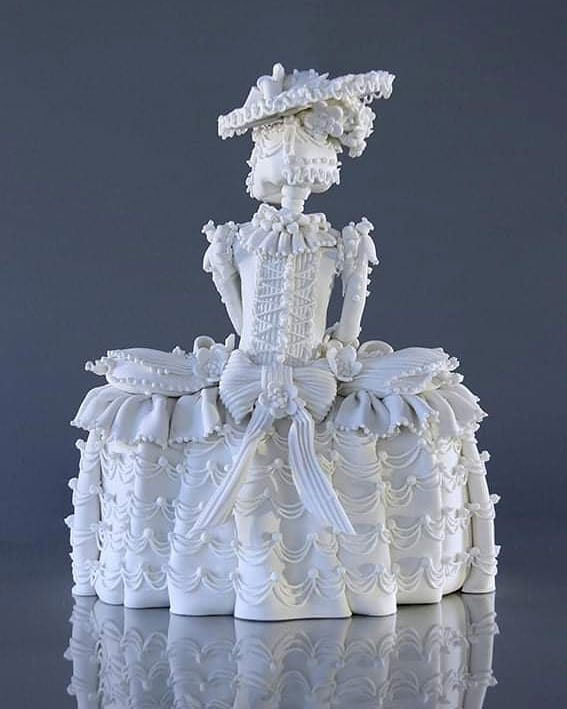 Realizadas íntegramente en azúcar, estas piezas retoman técnicas tradicionales como el alfeñique, la filigrana y el pastillaje, reinterpretadas desde una visión artística contemporánea.