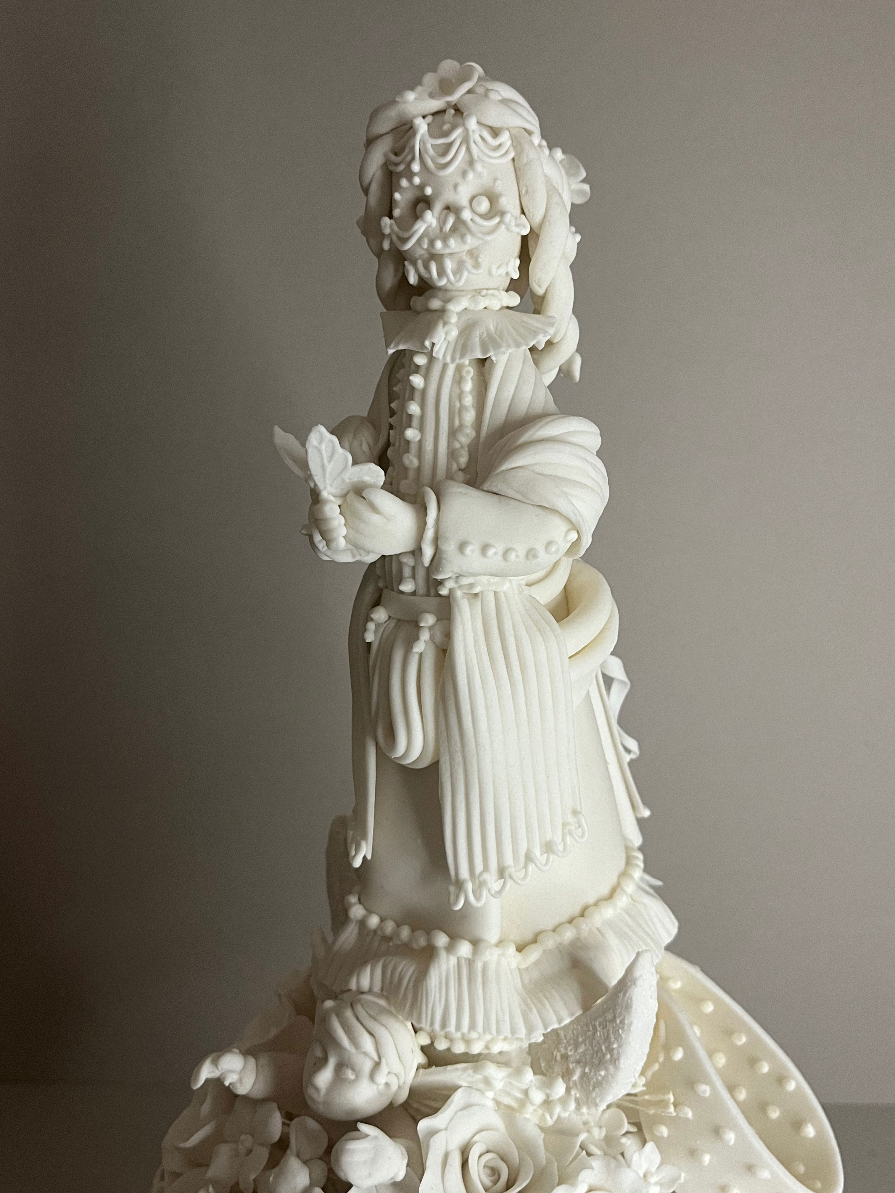 Change here is not rupture or loss, but transformation: a shift of body, matter, and spirit, where each form carries the promise of the next. With a monochromatic and delicate aesthetic, sugar—fragile and ephemeral—becomes a language through which belief, transition, and permanence are expressed. Mudanzas offers an intimate reflection on change as a sacred act and an essential condition of existence.